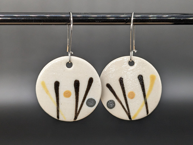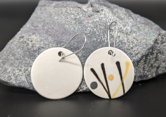 Boucles d'oreilles en grès blanc et acier inoxydable garanti sans nickel, sans plomb et sans cadmium.