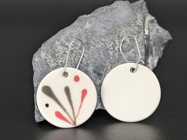 Boucles d'oreilles en grès blanc et acier inoxydable garanti sans nickel, sans plomb et sans cadmium.