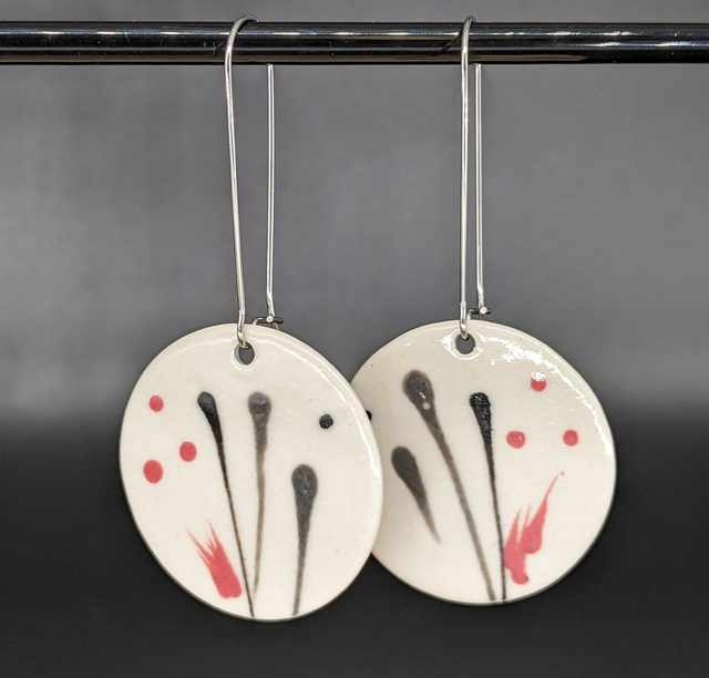 Boucles d'oreilles en grès blanc et acier inoxydable garanti sans nickel, sans plomb et sans cadmium.